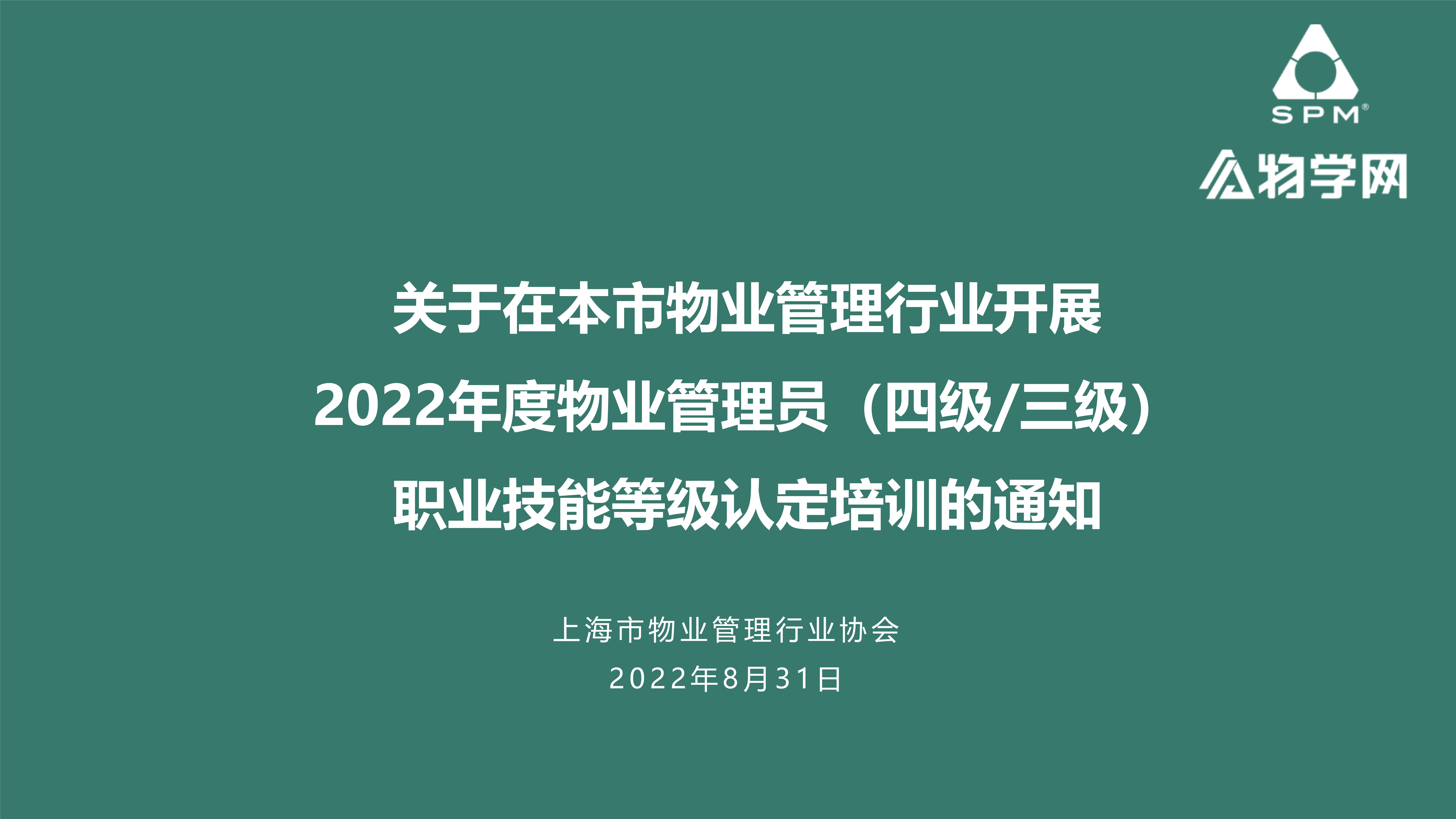 关于在本市物业管理行业开展2022年度物业管理员(四级、三级)职业技能等级认定培训的通知