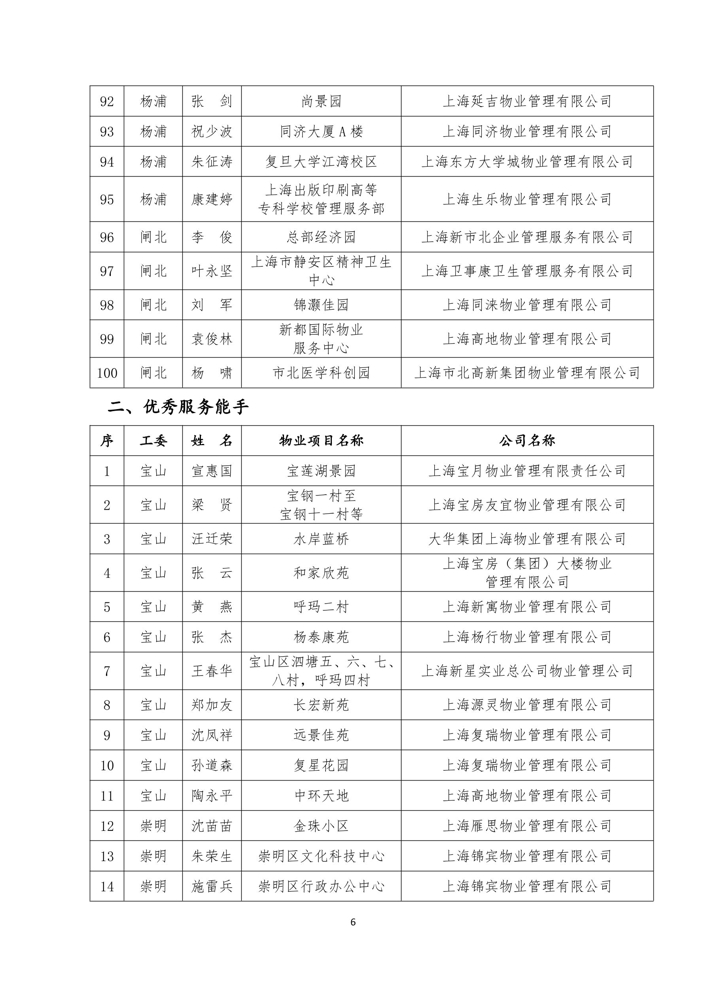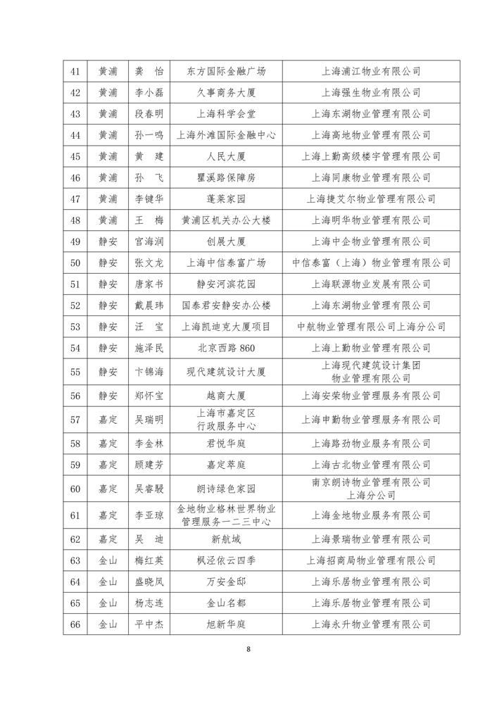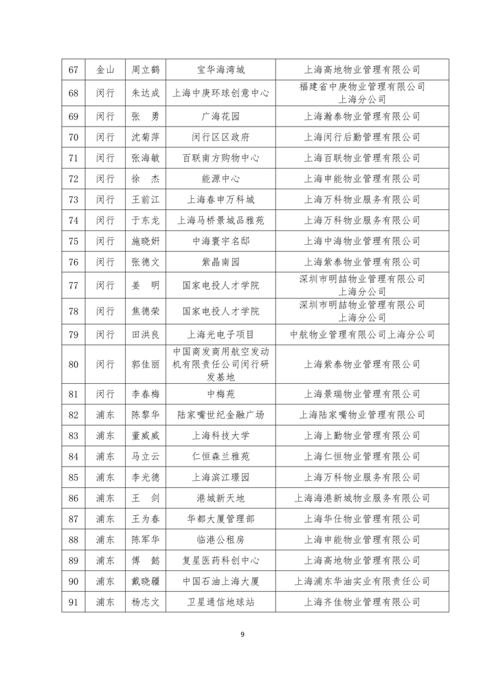 关于表彰2020年度上海市物业管理优秀项目经理、服务能手的通知